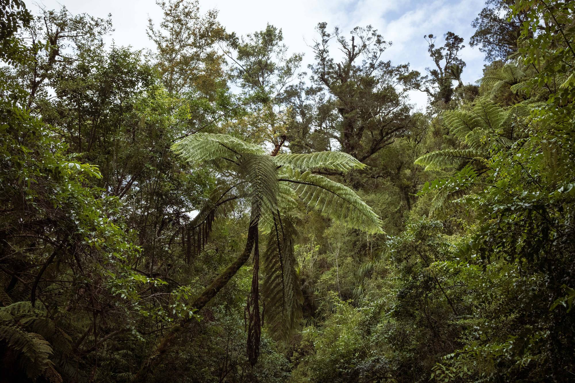 The bush can be brutally dense, with vines, windfalls, ferns, and steep ground. Travel is slow, especially in areas where aerial ungulate control has removed deer and, with them, the game trails bush travellers usually rely on.