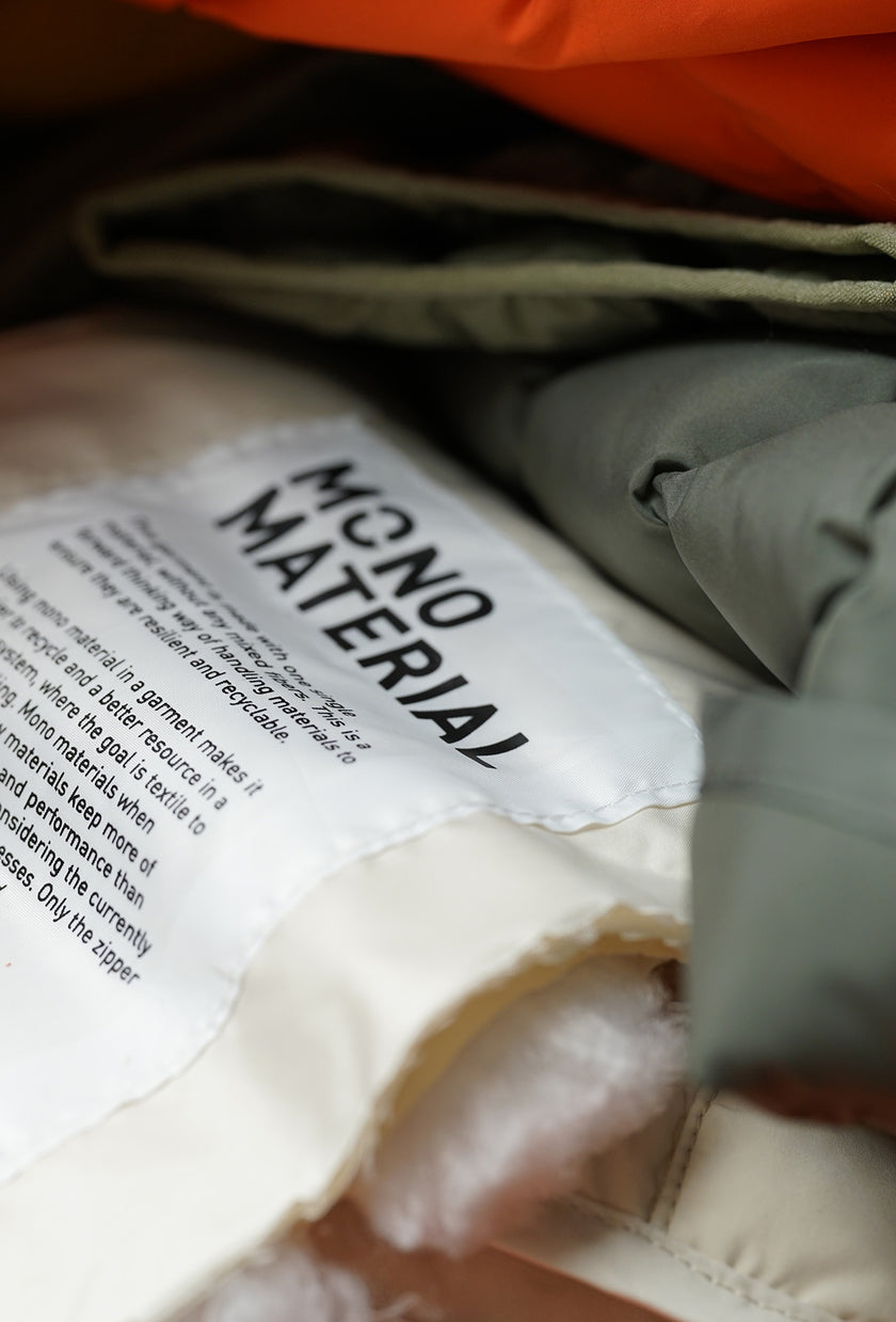 Mono Material garments are 100% recyclable. Each product is made from one single material, enabling garment-to-garment recycling and reducing waste.